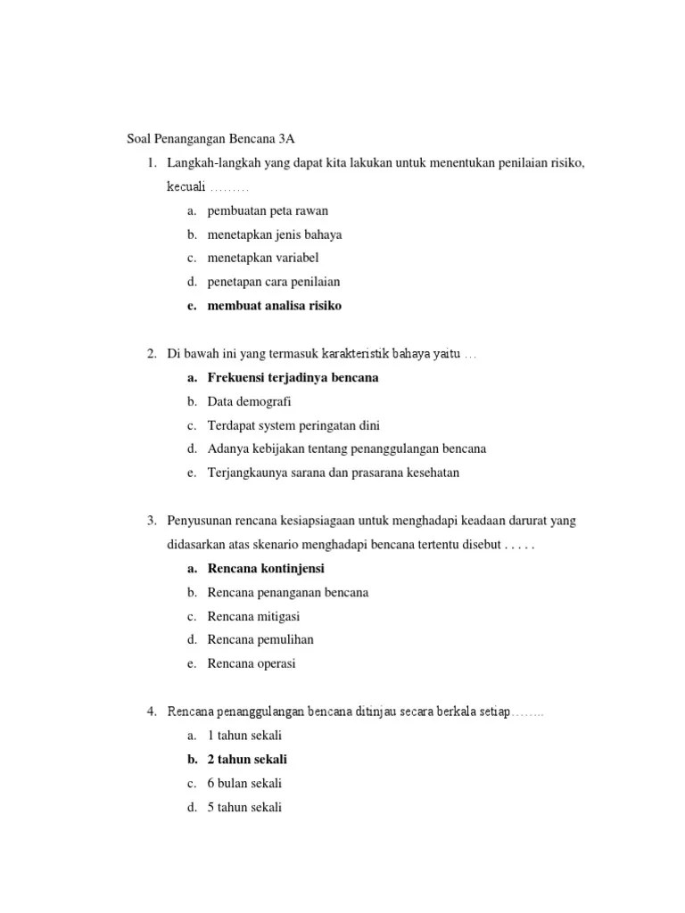 Korban jiwa dan kerugian psikologis. Soal pas geografi kelas 11 part 2 1. Pengurusan risiko adalah mengenal pasti, menilai, dan mengatur kepentingan risiko (ditakrifkan dalam iso 31000 sebagai kesan ketidak tentuan pada matlamat, samaada positif atau negatif) diikuti oleh penggunaan sumber secara teratur dan ekonomi bagi mengurangkan, memantau dan mengawal kemungkinan dan/ kesan peristiwa tidak diingini atau bagi memaksimakan penzahiran peluang. Korban jiwa dan kerugian ekonomi c. 21.12.2019 · soal dan jawaban mitigasi dan adaptasi bencana alam pilihan ganda jaja jamaludin diposting di 21 desember 2019 tagged with apa faktor penyebab bencana alam pada kali ini admin akan memberikan beberapa contoh soal mengenai mitigasi dan adaptasi bencana alam …